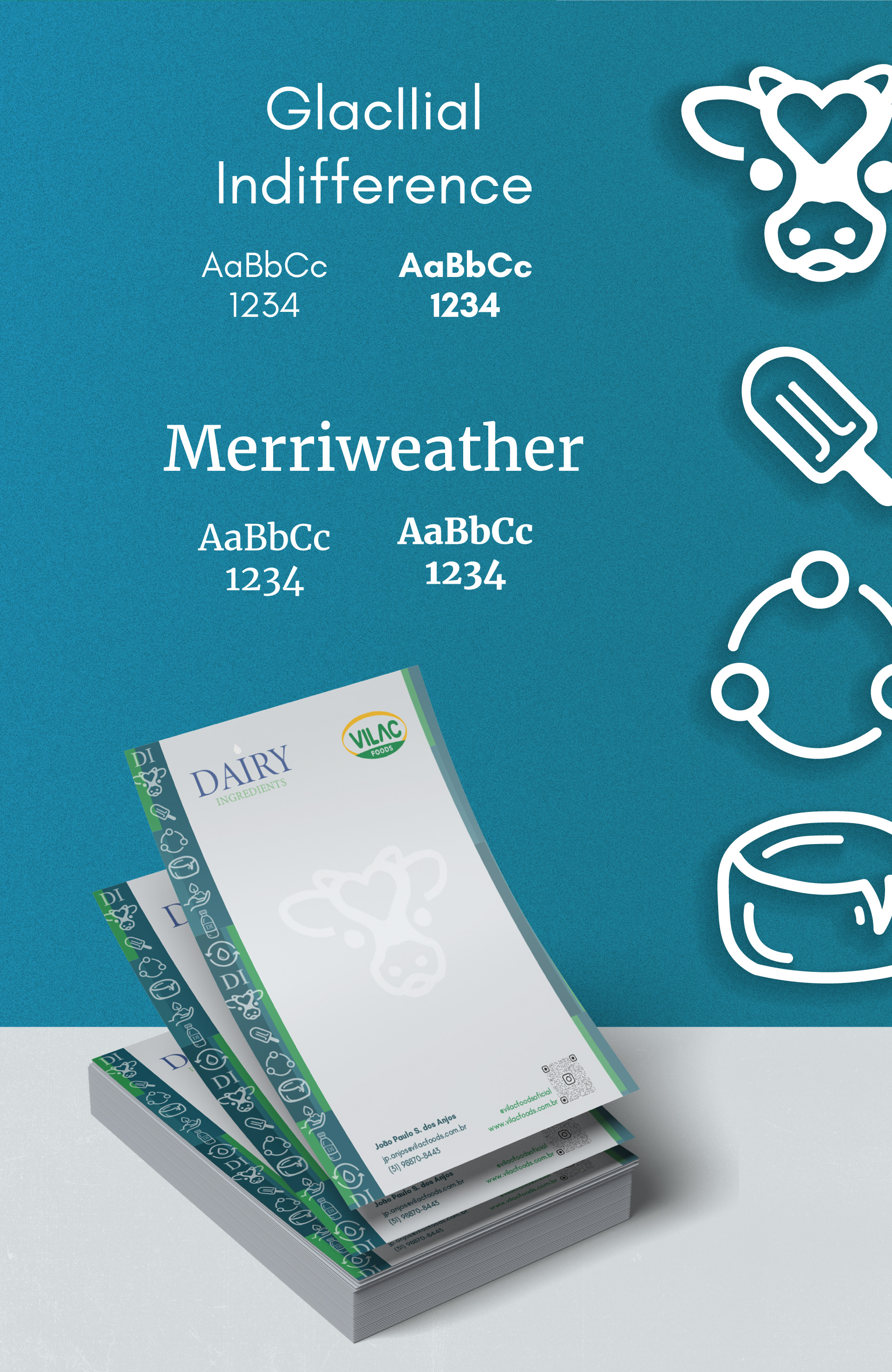 A marca apenas tinha Logo e necessitava dar continuidade ao desenvolvimento de sua Identidade Visual. Com isso, esse projeto teve a elaboração de uma Tipografia, Paleta de Cores, uma Malha e um Manual de Marca, com o fim de fortalecer o posicionamento da marca, e também dar partida na criação da loja digital da Dairy Ingredients. Como con-ceito, representa qualidade, acessibilidade e sustentabilidade, a fim de manter a tradição do mercado com a tecnologia em ingredientes.